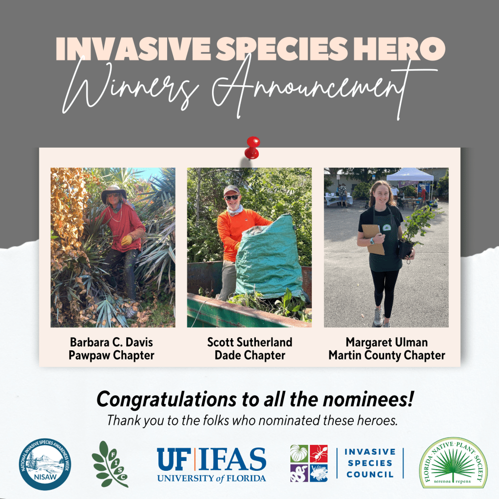 I’m also grateful to be mentioned as an ‘invasive species hero’ by @floridanativeplantsociety in honor of NISAW. It’s heartening to see so many others working against invasives!
