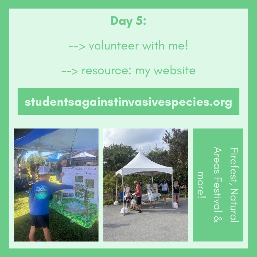 One last suggestion for how to learn more about invasives… come volunteer with me! It’s a fun way to get volunteer hours and learn about our environment. Check out my Instagram (@studentsagainstinvasivespecies) to see more information or if you want to see anything else I post about!