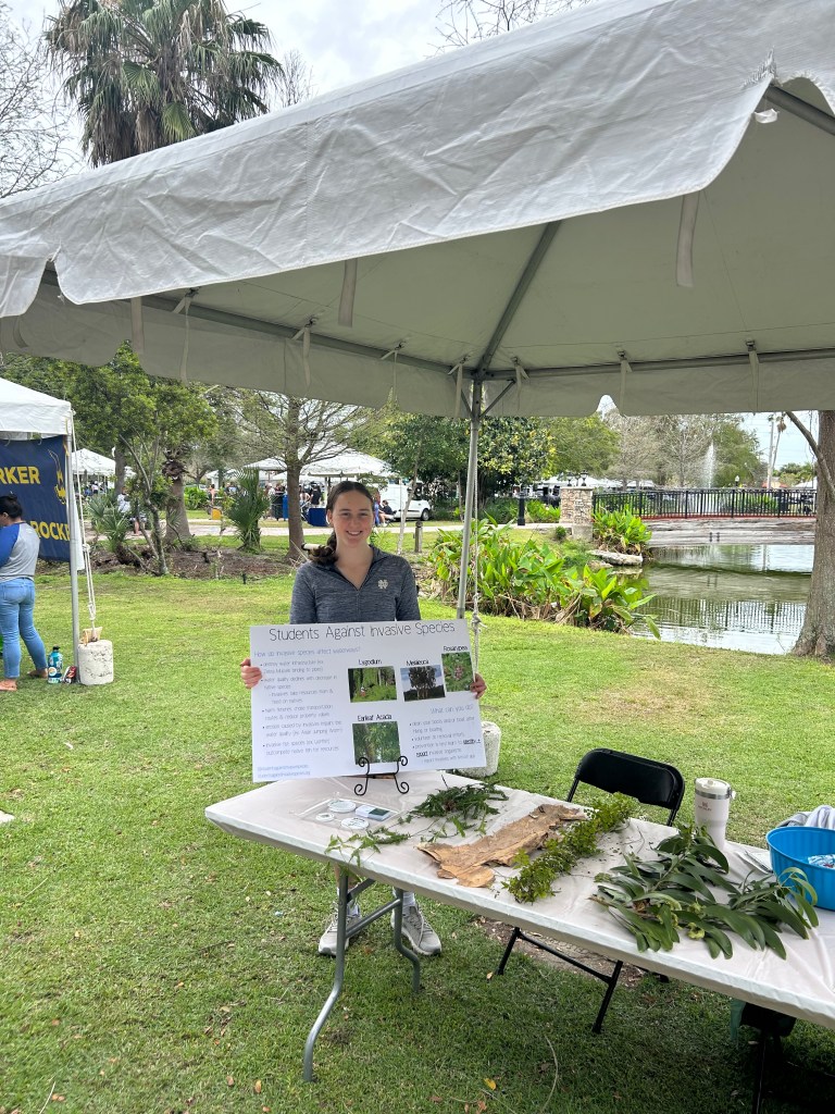 I was lucky enough to have a booth at this event! Over 210 people stopped by to say hello, learn more about invasive species, and try to win a prize (I think the ocean themed squirt guns were a hit…). Kids could win the prize by matching the 4 samples I had of invasive species (rosarypea, lygodium, melaleuca, and earleaf acacia) with their pictures on my poster. If kids matched correctly, they got the prize! While this game was going on, I would also say to the kids that these species were not helpful to Florida’s ecosystems and that we need to be able to recognize them so we don’t plant them in our yard or so we can report them if we see them. On top of the invasive species samples, I also had a poster I designed on the IveGot1 app, resources from the UF | IFAS extension office and Treasure Coast CISMA, and a poster board I used to outline the harms of aquatic invasive species and how you can help with this problem.