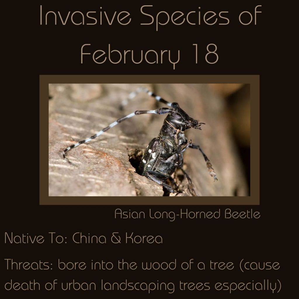 I finally am remembering to write this post…several weeks late and near the end of March. If you were following my Instagram (@studentsagainstinvasivespecies) then you would have seen it already though. So, without further ado, here are the invasive species I highlighted in February: